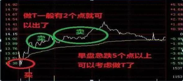 这个图,是开盘急跌5个点的,赶紧挂单买进,待反弹时,只要有获利,任何点位都可卖出。不要纠结是否卖在高位,只要获利即可,是做T技巧的要点,尽量减少亏损。